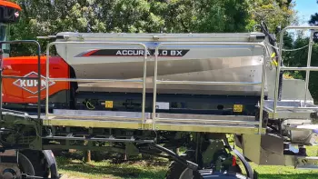 A transmissão hidrostática 4x4, trabalha com uma bomba dupla, motores hidráulicos independentes nas quatro rodas e redutores planetários, permitindo com que se trabalhe sempre no melhor regime de rotação, ganhando-se em economia de combustível e performance da máquina mesmo em terrenos mais difíceis. O Accura 4.0 BX não possui marchas definidas e sim velocidades de distribuição e transporte, são 2 modos de velocidades, sendo a velocidade máxima de distribuição de 20 km/h e a velocidade máxima de transporte de 40 km/h.