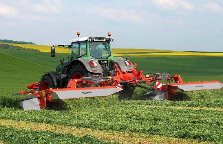 O ajuste adaptado pelo sistema de suspensão limita a introdução de impurezas na forragem e reduz a pressão no solo da barra de corte, reduzindo assim o consumo de combustível e o desgaste dos patins, mantendo a pastagem preservada.