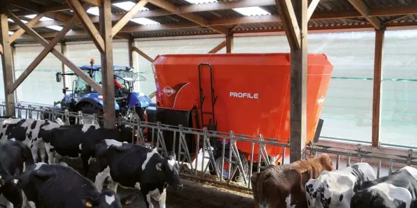 A linha PROFILE 2 M de vagões misturadores verticais de duas roscas sem fim foi projetada com uma caixa de largura média que oferece capacidades de 16 a 25 m3. Para distribuição direta (bicas ou esteiras inclináveis) ou distribuição transversal, pode ser equipada com uma turbina para forragem.