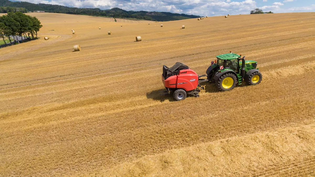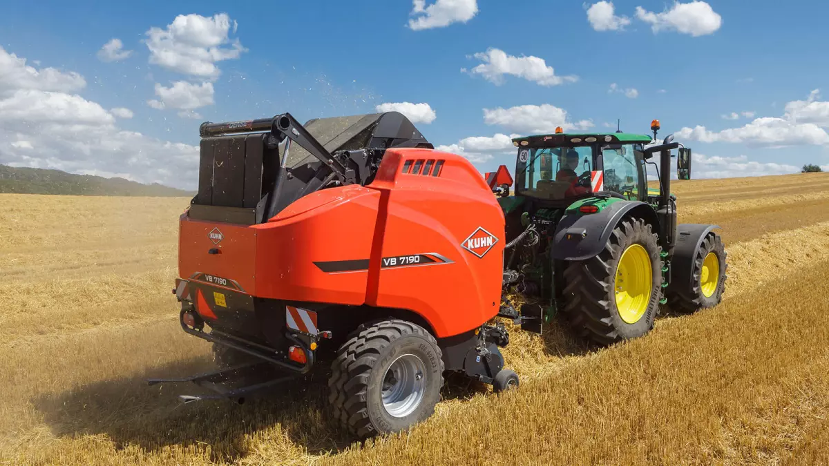 Todos os modelos VB 7100 apresentam um amplo pick-up com direção de came com rolo de colheita pesado com proteção contra vento (diâmetro: 217 mm). O pick-up é projetado para maximizar a capacidade total da máquina. Com uma largura de trabalho de 230 cm, a máquina é capaz de trabalhar em todas as leiras e não o decepcionará, mesmo nas condições mais difíceis. Os dentes retos ajudam a liberar a colheita e reduzem o acondicionamento da colheita. O rolo coletor comprime a colheita contra os dentes coletores, reduzindo o atrito, limitando assim a perda de folhas e aumentando a eficiência da enfardadeira ao nivelar a leira.